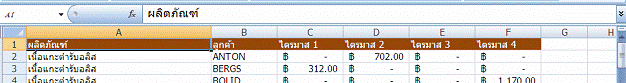 แถวส่วนหัวของตาราง แถวส่วนหัวของตารางสามารถเปิดหรือปิดได้ เมื่อส่วนหัว ของตารางถูกแสดง ส่วนหัวของตารางยังคงมองเห็นได้พร้อมกับข้อมูลในคอลัมน์ของตารางด้วย การแทนที่ส่วนหัวของแผ่นงานเมื่อเราเลื่อนไปเรื่อยๆ ในตารางแบบยาว