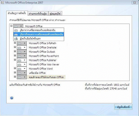 ระบบ Microsoft Office 2007 เป็นชุดของซอฟต์แวร์เดสก์ท็อปและ เซิร์ฟเวอร์ที่ครบวงจร ซึ่งคุณสามารถใช้เพื่อเพิ่มประสิทธิภาพของการทำธุรกิจ มีความสามารถ ใหม่ๆ มากมายที่จะช่วยเพิ่มประสิทธิภาพในการทำงานส่วนบุคคล และช่วยลดความซับซ้อนของ การทำงานร่วมกัน ความแตกต่างของ Microsoft Office 2007 Microsoft Office 2007 โปรแกรม สำนักงานทั่วไป จะมีพื้นที่ทำงานที่คล่องตัวมากขึ้นและไม่รกรุงรัง ลดสิ่งที่ไม่จำเป็น และช่วยให้ ผู้ใช้สามารถสร้างผลงานที่ต้องการได้อย่างรวดเร็วและง่ายยิ่งขึ้นวิธีติดตั้งโปรแกรม Microsoft Office 2007 โปรแกรมสำนักงานทั่วไป วิธีการติดตั้งโปรแกรม การเปิดใช้งานเริ่มแรก