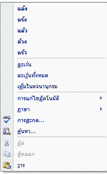 รูป แสดงเมนูลัดในการจัดการตารางควบคู่กับการใช้แท็บบริบทแถบเครื่องมือตาราง